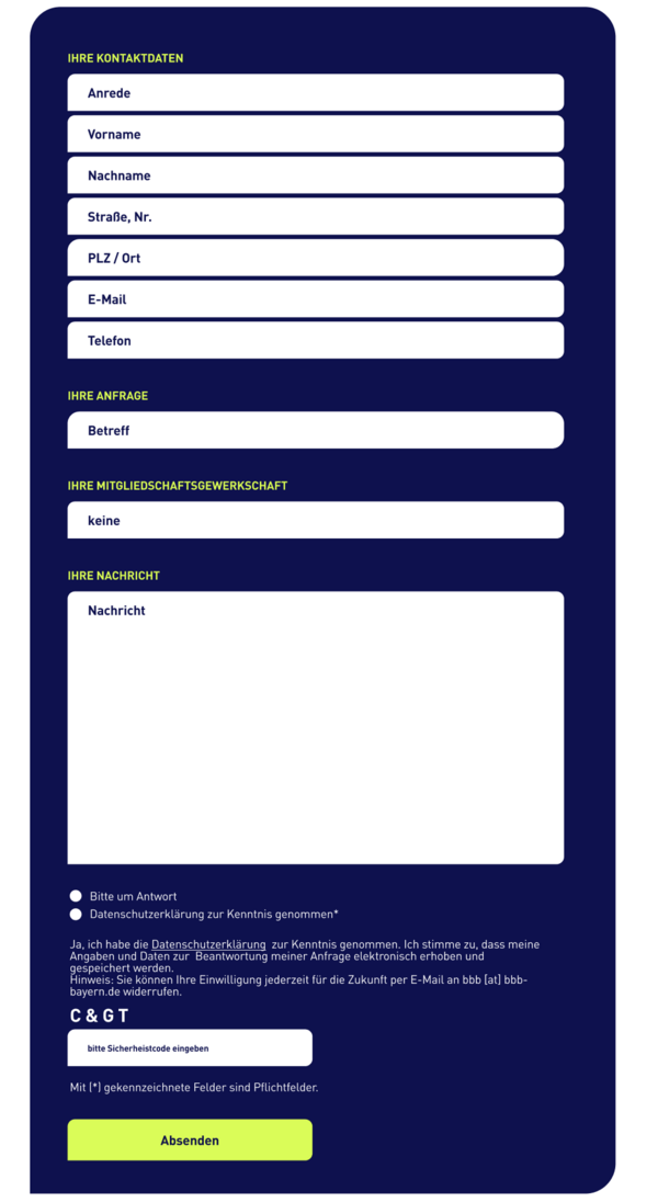 Bayerischer Beamtenbund e.V. Lessingstraße 11 80336 MünchenTelefon: (089) 55 25 88-0 Fax: (089) 55 25 88-50 E-Mail: bbb@bbb-bayern.de